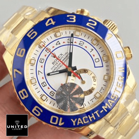 The Rolex Yacht-Master 116688 II Yellow Gold Automatic Dial Oyster Replica is equipped with sophisticated functions such as a chronograph, column wheel, and countdown features, making it a versatile tool for both everyday wear and special occasions. Its 30m water resistance provides an added layer of protection, ensuring that this watch is ready for any adventure. Moreover, it comes with a comprehensive 2-year international United Luxury warranty, offering peace of mind for your investment.