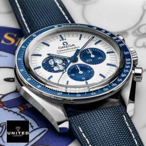 This high-quality 1:1 super clone watch features a 904L stainless steel case with a blue bezel and a blue-white dial, protected by a sapphire crystal.